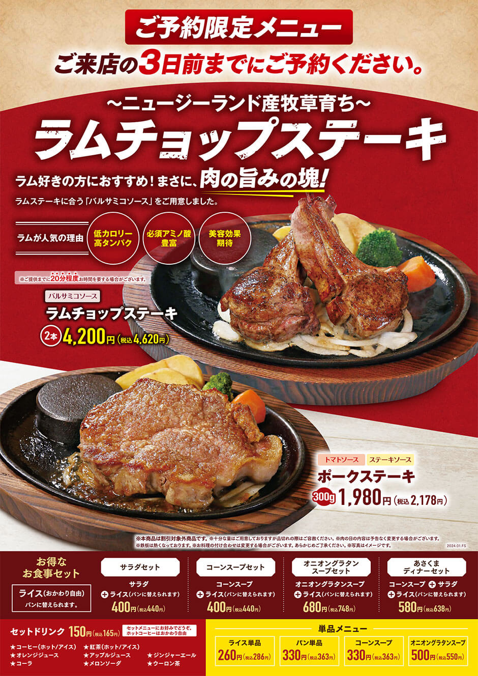 【終了しました】ラムチョップステーキ・ポークステーキ《鶴見店》